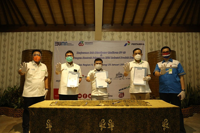 PT Pertamina Lubricants, anak perusahaan PT Pertamina (Persero) komitmen untuk mendukung pertumbuhan dan kemajuan sektor industri nasional khususnya segmen marine. Komitmen itu ditunjukkan dengan melakukan penandatanganan kontrak kerjasama penyediaan pelumas Meditran SV 40 untuk berbagai perusahaan pelayaran kapal motor di wilayah Banyuwangi dan sekitarnya.