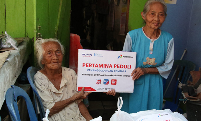 Pertamina berupaya merangkul dan memberikan dukungan bagi masyarakat tidak mampu, termasuk yang berprofesi sebagai pekerja harian di sekitar wilayah operasi. Kelompok masyarakat tersebut termasuk yang terdampak secara ekonomi pada masa-masa pencegahan penyebaran COVID-19 di Indonesia. Kegiatan mencari nafkah harian seperti tukang becak, pedagang sayur, dan penjaja makanan keliling yang biasanya menjadi sumber pemasukan setiap harinya terpaksa terhenti untuk sementara.